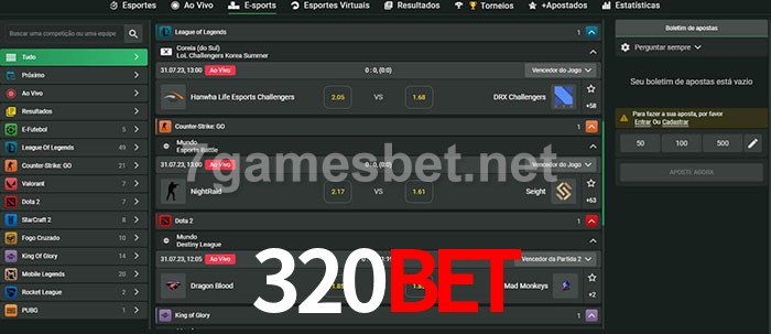 O 320Bet oferece uma grande seleção de opções de apostas em e-sports com probabilidades competitivas